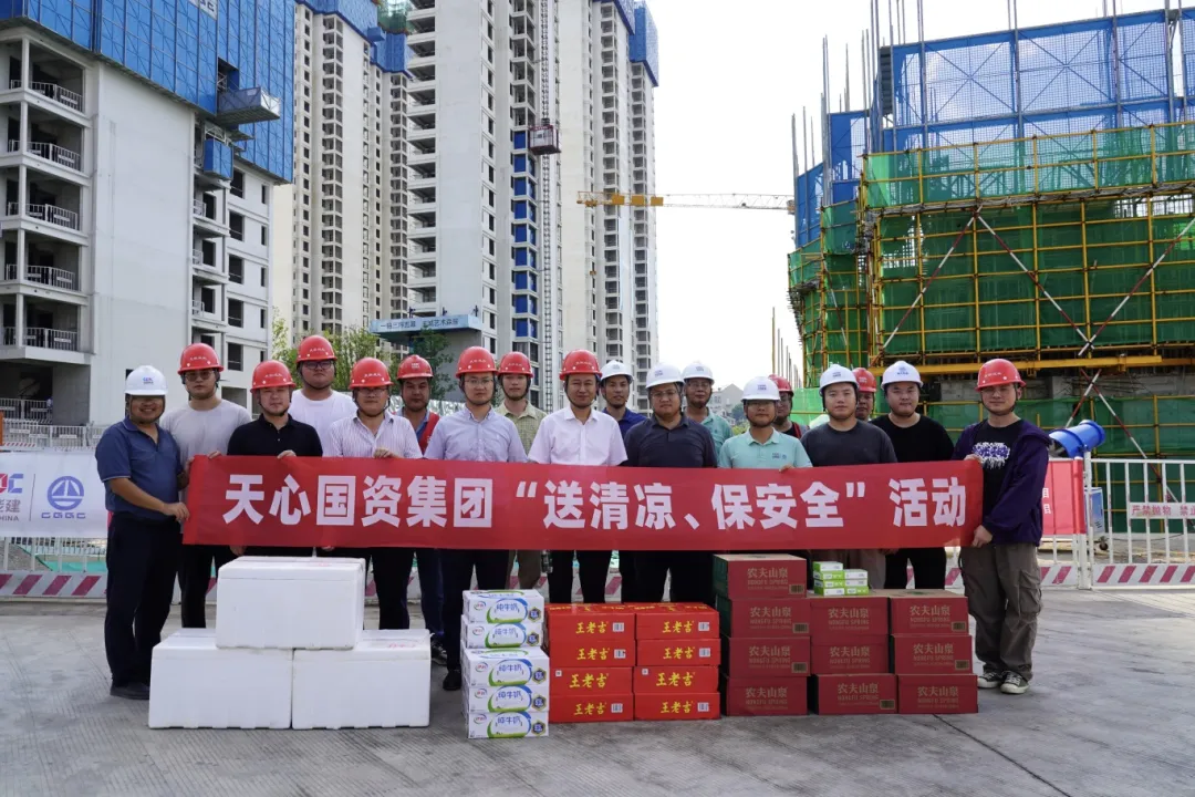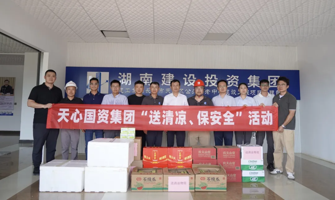 项目现场,集团领导向坚守岗位的员工送去防暑降温物资,询问工人工作强度、作息安排等情况,指出在高温作业时要注意防暑降温、劳逸结合,科学安排时间,确保身体健康和施工安全。