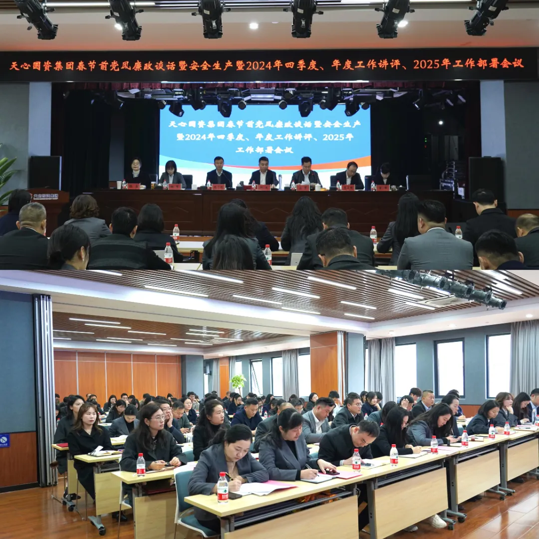 1月23日上午,天心国资集团组织召开春节前党风廉政谈话、安全生产工作会议暨2024年四季度、年度工作讲评和2025年工作部署会议。集团班子成员,各部门、全资子公司全体人员,控股子公司主要负责人参加会议。