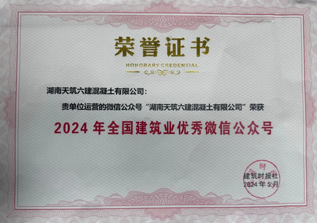 会上,建筑时报社公布了2024年全国建筑业“最具影响力”微信公众号、2024年全国建筑业优秀微信公众号榜单,九游会老哥必备的交流社区集团子公司湖南天筑六建混凝土有限公司微信公众号斩获年度全国建筑业“优秀微信公众号”称号。