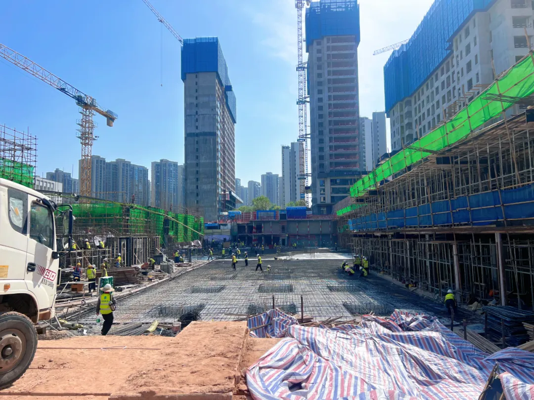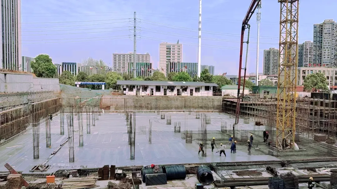 随着最后一块基础底板平整压光,汇金中心项目顺利完成全部基础底板浇筑任务,标志着项目建设取得阶段性突破,已全面进入“正负零”冲刺阶段。