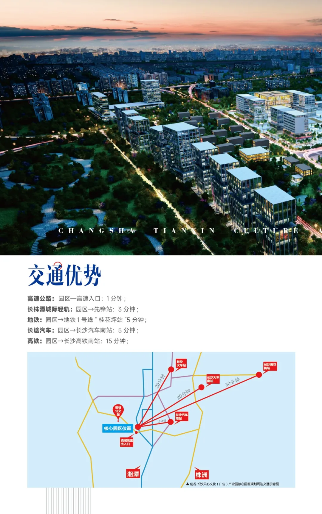 创谷·长沙天心文化(广告)产业园雄踞省府 CBD 核心坐拥三馆一中心、芙蓉南路商圈,位于国家级“长株潭城市群两型社会综合配套改革试验区”的核心地带,东接芙蓉路“南北贯通”;南依长沙绕城高速洞井路出入口“通达全城”;西牵湘府路大桥“两岸互联”;北连“湘江南路”直达城心。